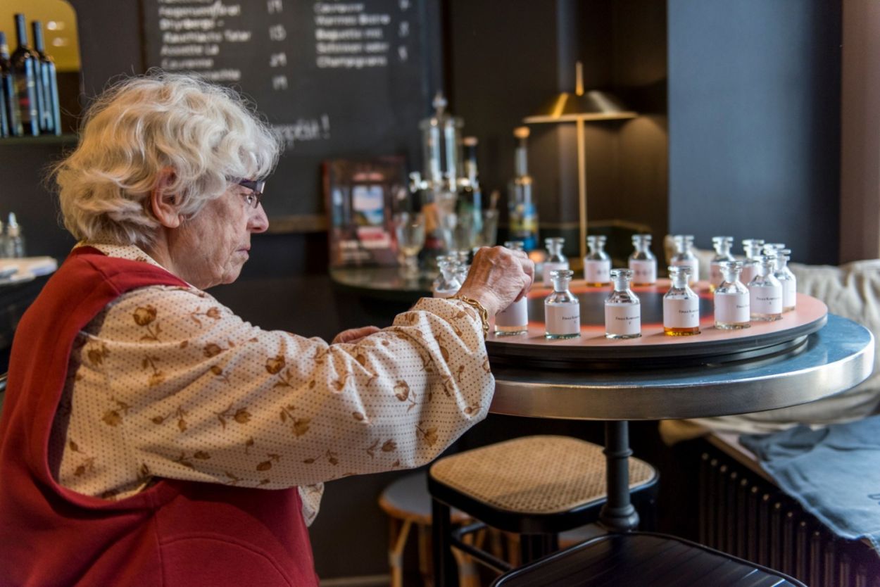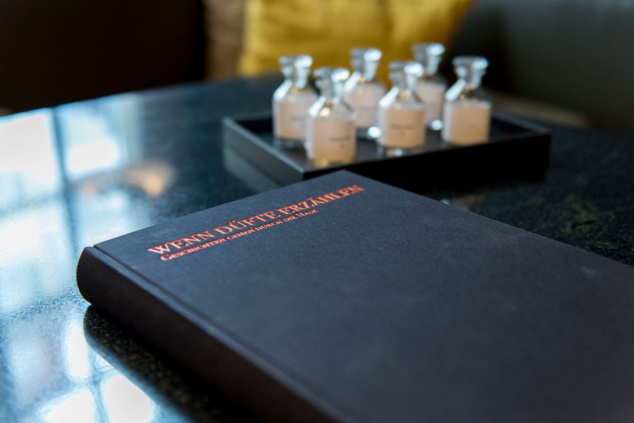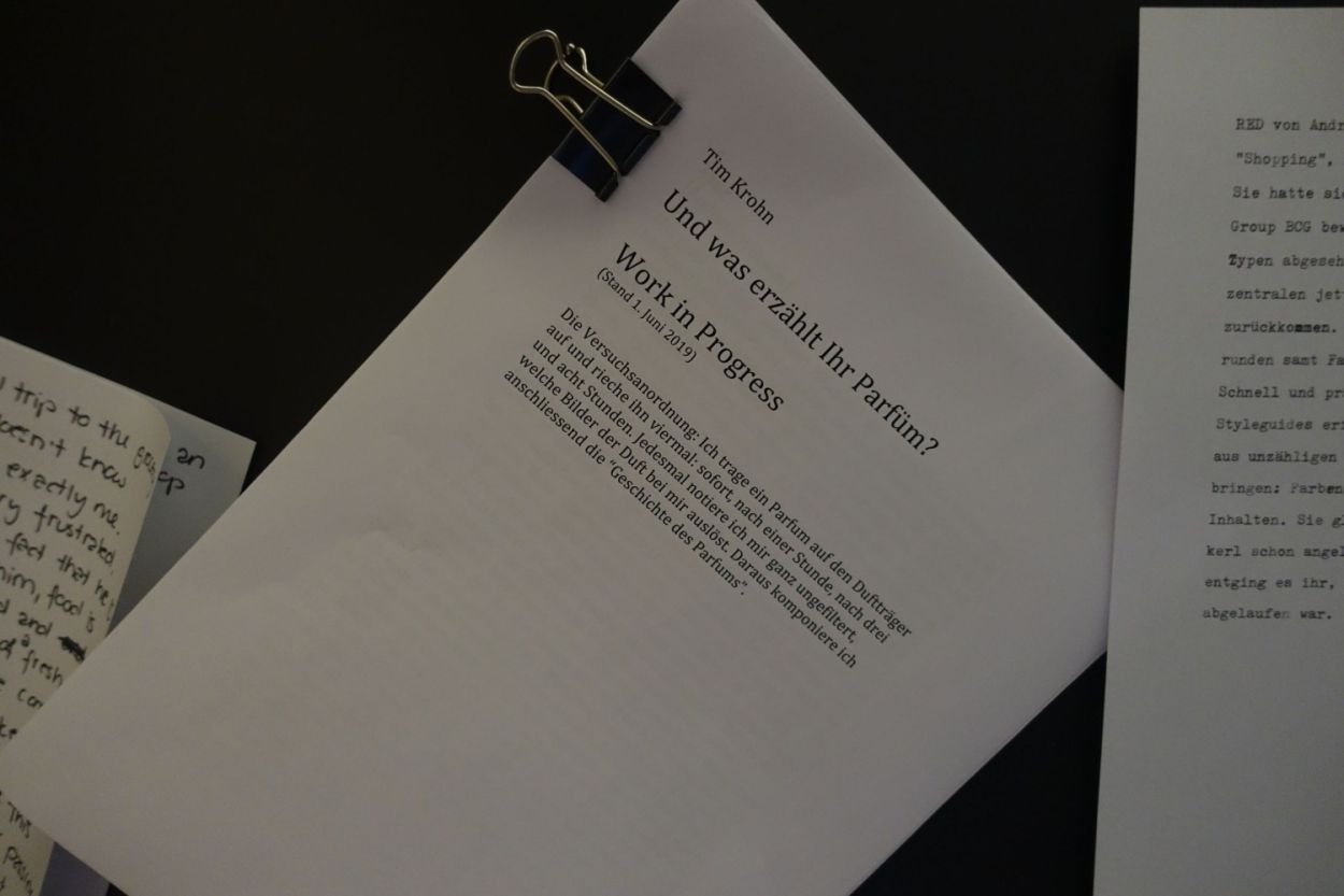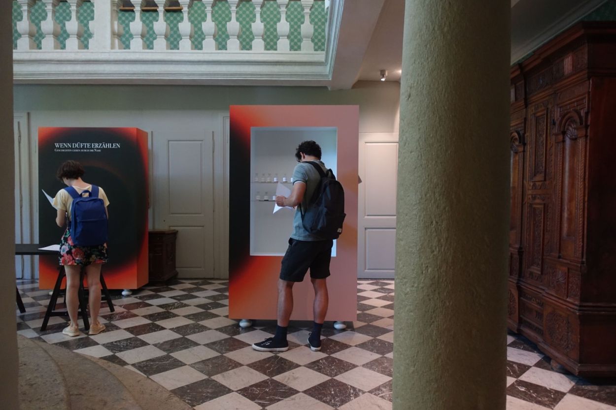 The Solothurner Literaturtage 2019, Switzerland's foremost literature festival, provided the context for workshops, readings, discussions, and writing sessions with people from all walks of life. “When Fragrances Tell: Olfactory Storytelling” encouraged unconventional forms of meaning making by fusing creative writing with critical smelling. We used more than 20 different perfumes created by Brian Goeltzenleuchter, Christophe Laudamiel, Sean Raspet and Andreas Wilhelm, as well as prior modifications and raw materials to transform a traditional bar into a temporary scent bar. This pop-up exhibition served as the homebase for individual and collective explorations into olfactory worlds. Overseeing the events, the novelist Tim Krohn wrote ingenious stories inspired by the scents.