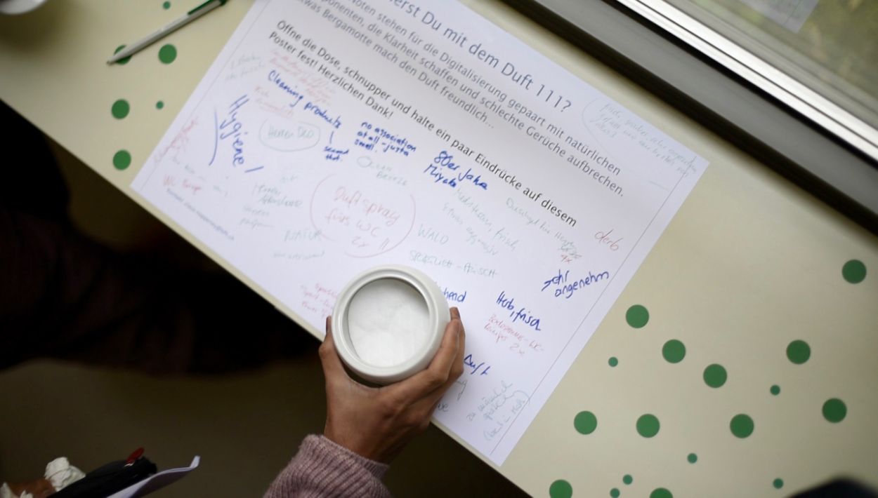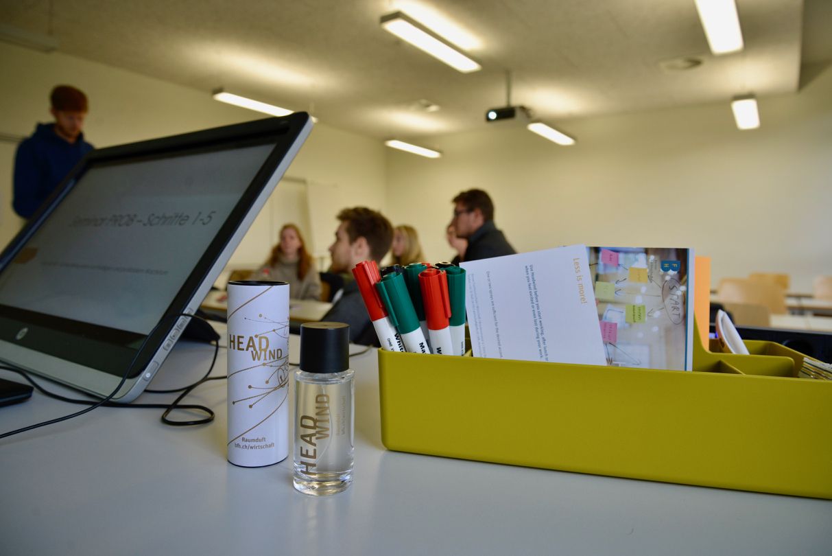 The development process involved students, alumni, professors and staff at various stages of the process (e.g. concept, evaluation, launch). For the school as an organization this experimental use of scent catalyzed the ongoing organizational change process. The scent was launched under the name Headwind as an ambient scent for new worlds of work: Today Headwind is not only used as a giveaway for corporate and non-profit partners of the school. It is also available in meeting rooms and lecture halls. Its presence in the school’s culture tells how the experiment worked out.
