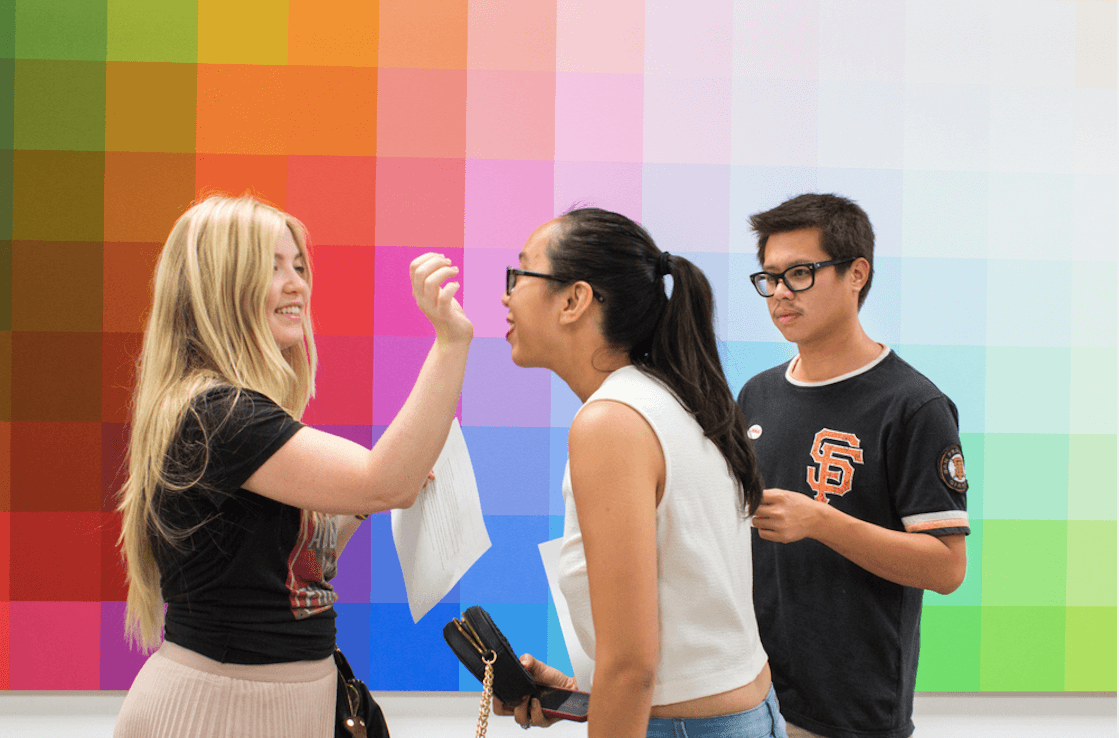 Visitors experiencing Sillage, an olfactory artwork by Brian Goeltzenleuchter in Santa Monica.