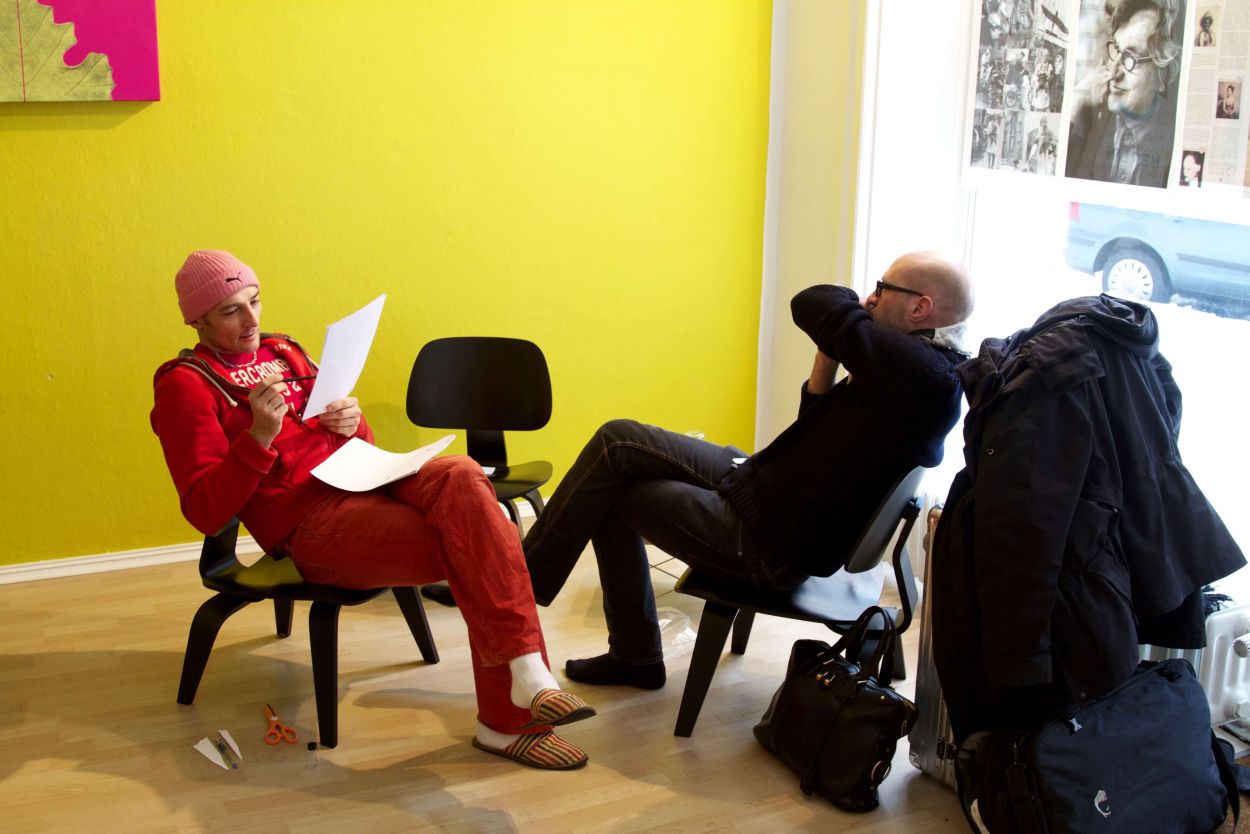 En passant, Christoph Hornetz and Christophe Laudamiel are smelling and sharing first impressions.