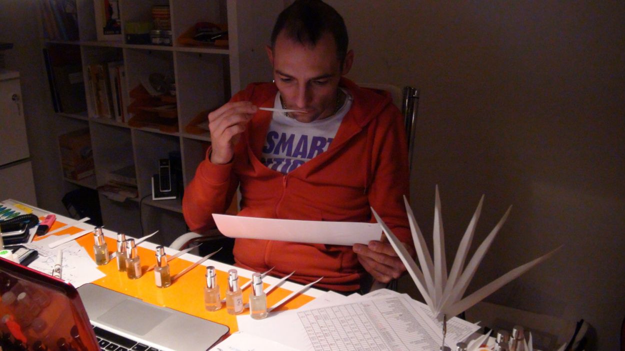 Christophe Laudamiel evaluating multiple modifications.