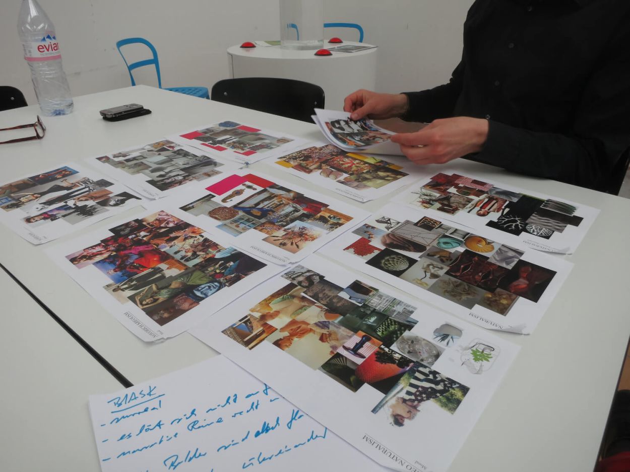 In this case the independent designers and their sub-products are coordinated by means of a visual concept which consists of three collages, known as a «mood board.» A mood board is an aesthetic device that connects senses and emotion. It is able to encourage multiple conceptual interpretations while also having a directing and aligning effect. But do the perfumers really care about the concept? For Christophe it is clear that the concept goes beyond the technical brief that dictates raw materials and identifies a target consumer. The concept challenges the perfumer’s creativity. This clip reveals the perfumer’s personal attachment to the concept and its performative qualities: «It is a brainiac».
